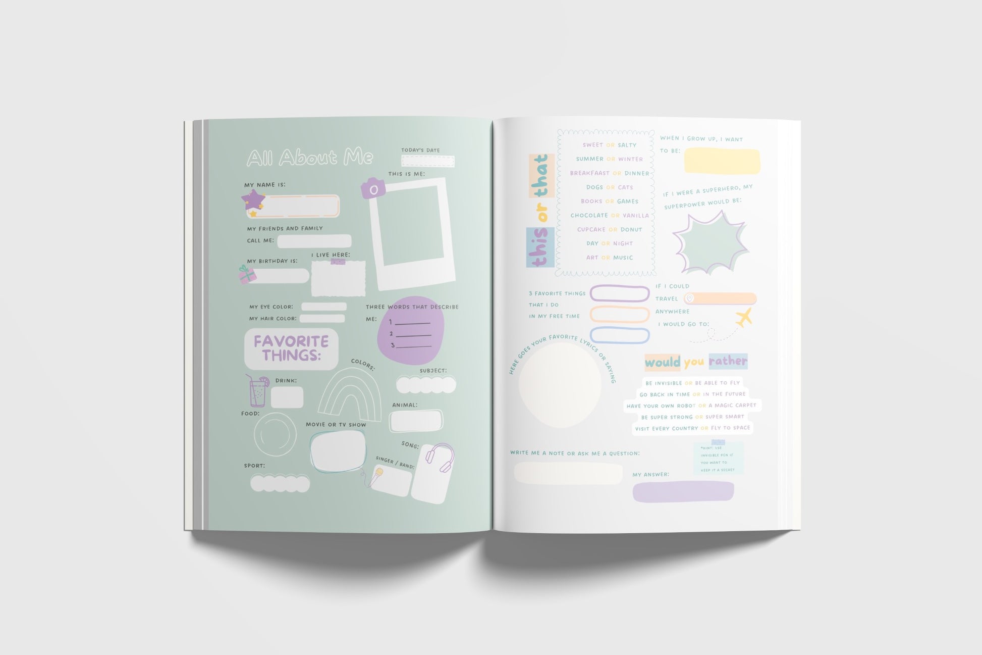 Whether it’s silly “Would You Rather” questions or thoughtful reflections, every page invites laughter, conversation, and deeper bonds. It’s more than just a journal—it’s a keepsake of friendships, memories, and all the little moments that matter most.